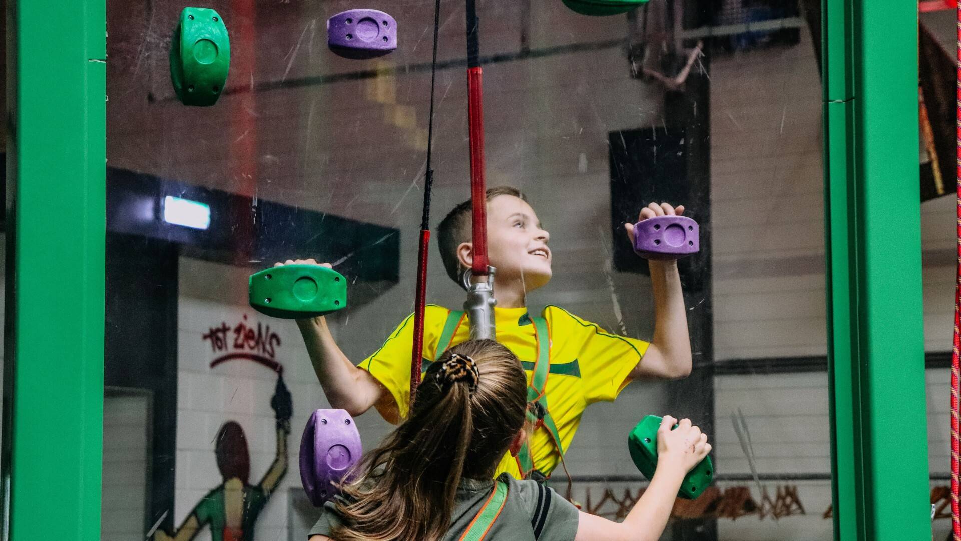 Er dient altijd een ouder/begeleider van 18 jaar of ouder aanwezig te zijn om te helpen met vastclippen en die de verantwoordelijkheid draagt voor de klimmer(s).